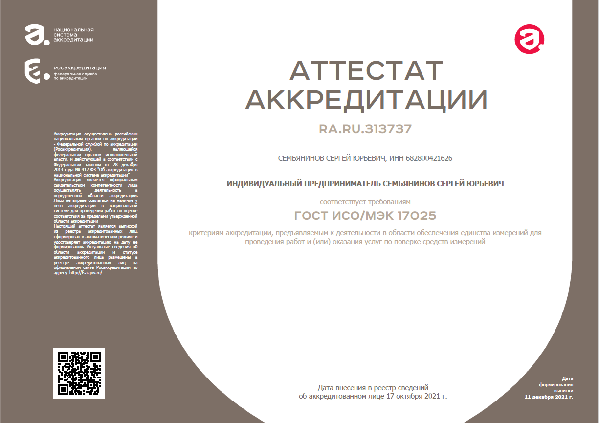 Проведение работ производится квалифицированными метрологами в строгом соответствии с нормативными документами и действующим законодательством РФ.